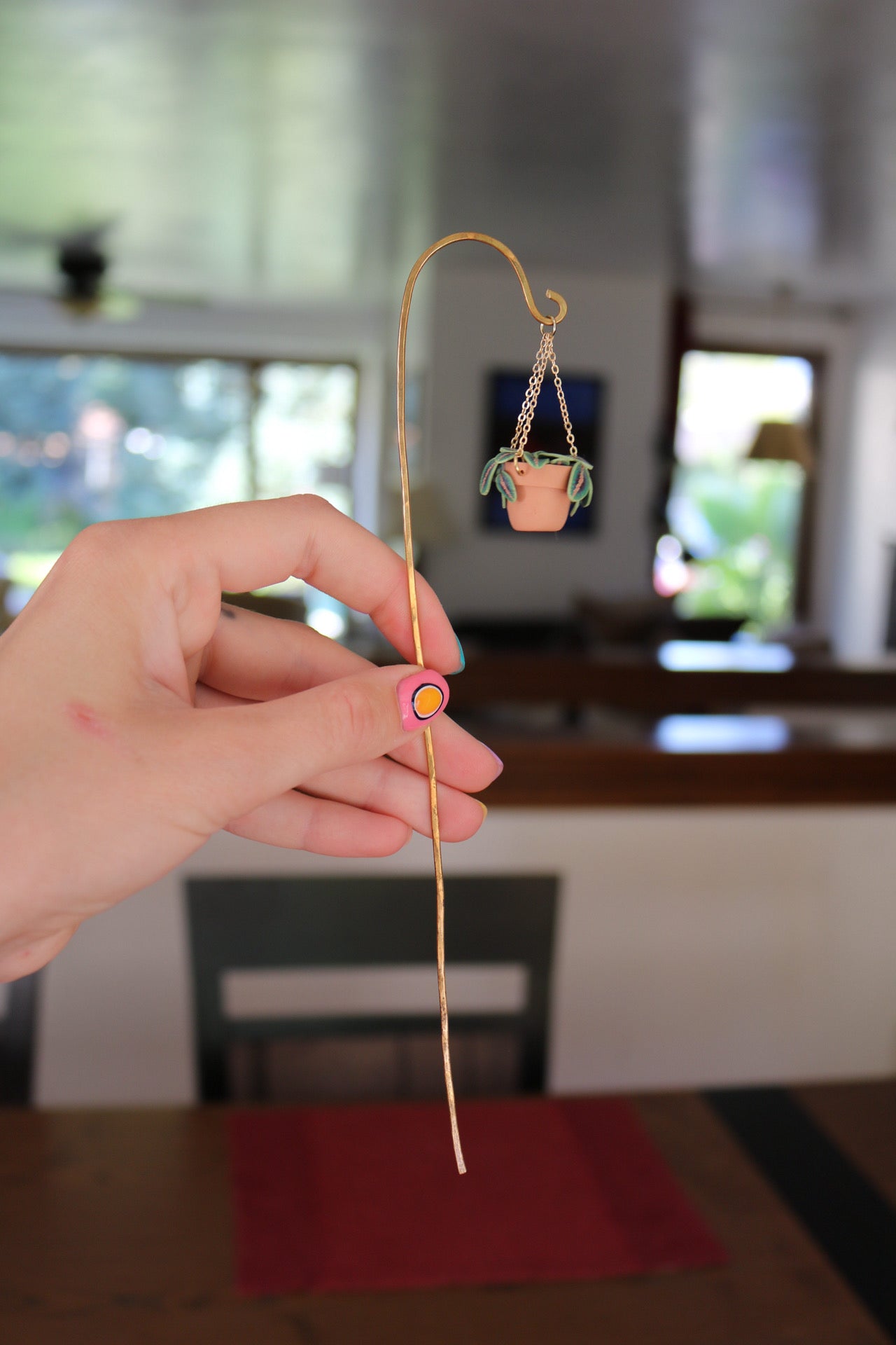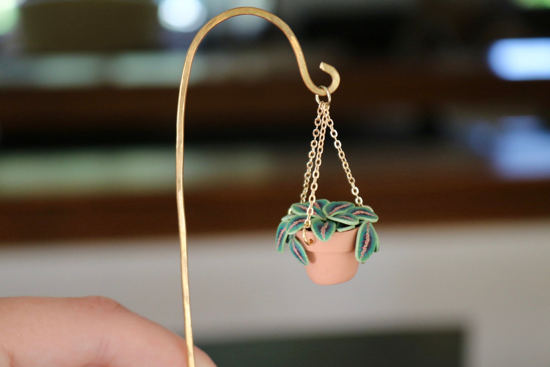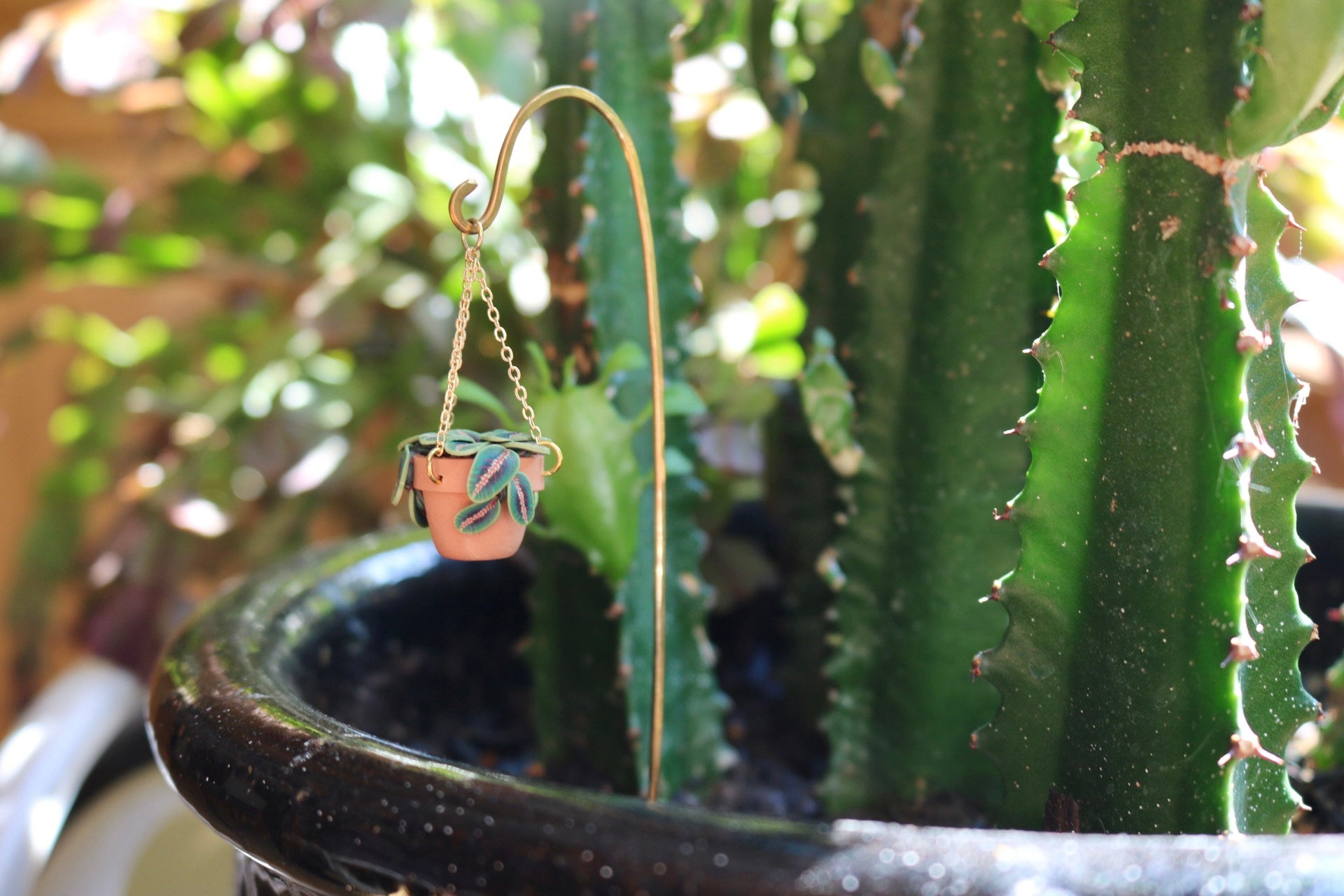Handmade Prayer plant charm with hammered brass Shepherd's hook. Add a tiny plant to your normal size plant!
